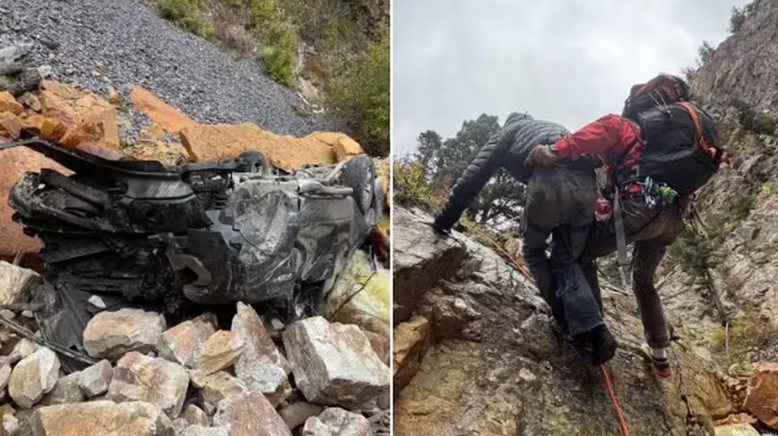 Homem despenca de 90 metros de altura com picape, que fica toda destruída, mas ele escapa com ferimentos leves