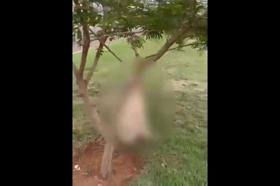 Uma cena de extrema crueldade foi registrada em vídeo na cidade de Sorriso. Um cão foi encontrado morto, amarrado com cordas pelo pescoço, na noite da última quarta-feira (15). A remoção do corpo, no entanto, foi realizada apenas na manhã desta quinta-feira (16).