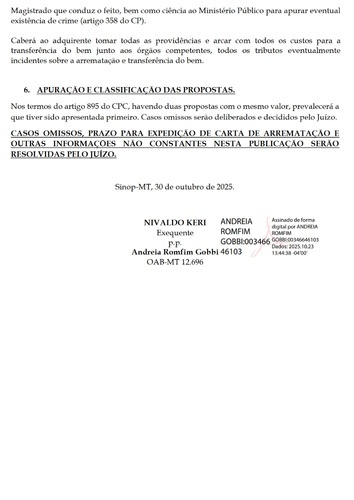 CASOS OMISSOS, PRAZO PARA EXPEDIÇÃO DE CARTA DE ARREMATAÇÃO E OUTRAS INFORMAÇÕES NÃO CONSTANTES NESTA PUBLICAÇÃO SERÃO RESOLVIDAS PELO JUÍZO.