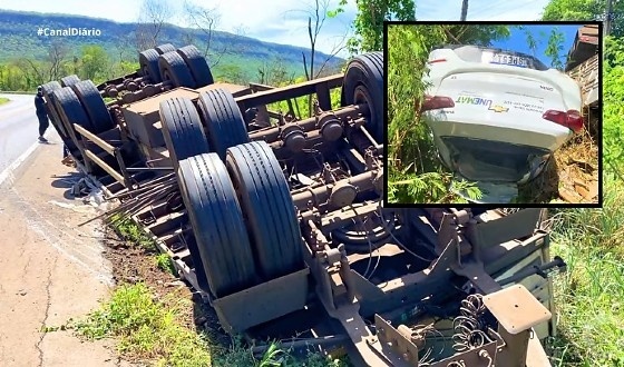 Um grave acidente na BR-070, próximo à comunidade Camil, em Cáceres, foi registrado na manhã desta sexta-feira (7). A colisão envolveu uma carreta carregada com telhas de amianto e um veículo de passeio da Universidade do Estado de Mato Grosso (Unemat), deixando três pessoas feridas, sendo uma em estado grave.
