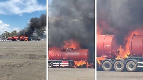 Um caminhão-tanque pegou fogo na tarde desta quinta-feira (16) na Rodovia dos Imigrantes, em Várzea Grande.