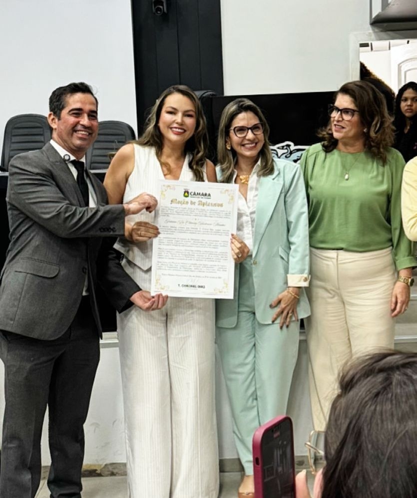 Durante a cerimônia, Dra. Fátima se emocionou ao receber a homenagem, especialmente pela presença de sua mãe, que acompanhou o momento de reconhecimento.