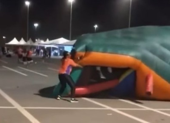 A ventania, que surpreendeu participantes da corrida, derrubou estruturas e arremessou brinquedos infláveis. Vídeos que circulam nas redes sociais mostram o momento em que o vento atinge o parque, com pessoas correndo e gritando enquanto ambulâncias prestavam socorro a feridos.