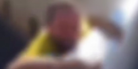 Ao se aproximar com a moto, as imagens capturam um homem “pendurado” na mureta da rotatória, com falas incoerentes. O piloto desce da motocicleta e pede “calma” à vítima.