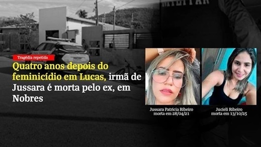 Uma tragédia familiar marcada por dor e violência voltou a chocar Mato Grosso. Jucieli Ribeiro Caju Boa Morte, de 30 anos, assassinada na segunda-feira (13) em Nobres, era irmã de Jussara Ribeiro, morta em 2021 em Lucas do Rio Verde, também vítima de feminicídio. Duas irmãs, em cidades diferentes, tiveram o mesmo destino trágico, mortas por ex-companheiros em crimes passionais.